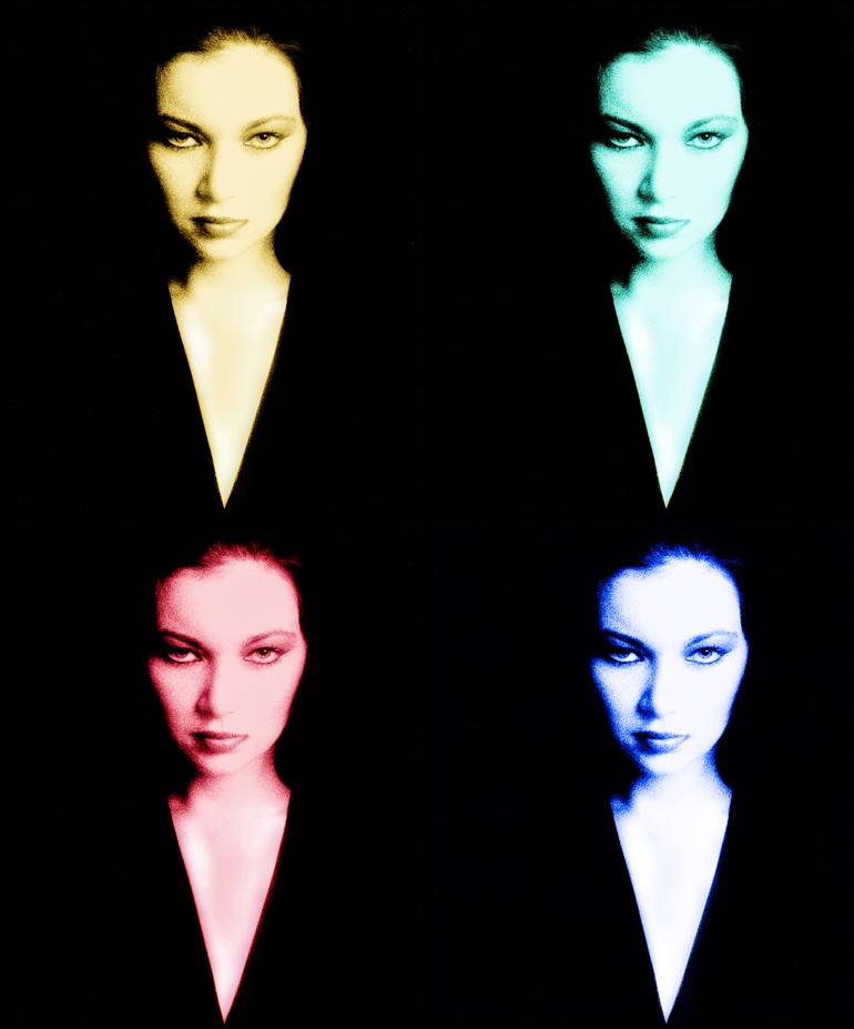 The Temptress, 1976 A composite composition of a portrait I did in 1976 in my studio in Hollywood. Shot on Tri-X black and white film, the models stare was almost haunting, so I decided to take four of the same image and tone each a different color and arrange in a format of 4 total. Image size: 1...
