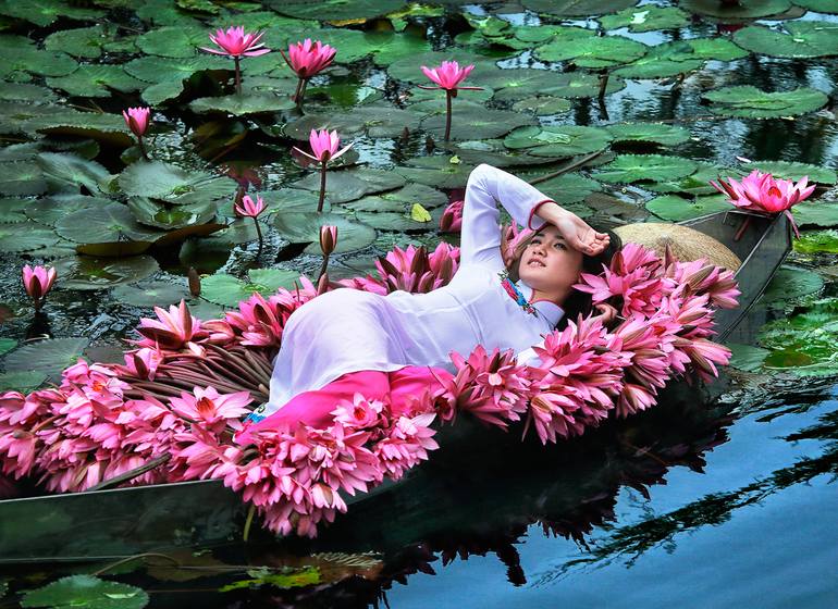The charming girl with Water Lily. *Customization editions: smaller sizes, canvas or paper