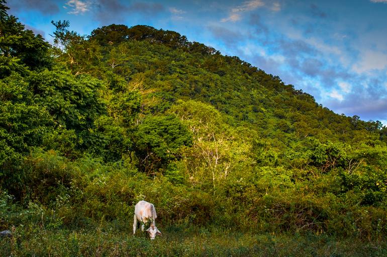 I was watching this little lonely cattle eating grass.