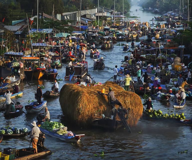 The morning at Nga Nam floating market, Mekong Delta area. +Customize editions: smaller sizes and materials (canvas or paper)