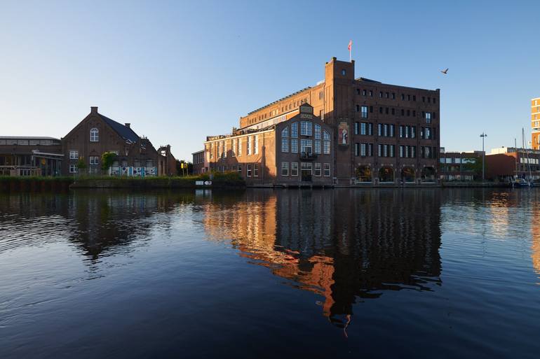 The old Droste chocolate factory in the city centre of Haarlem at dawn