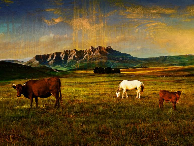 Huck Orban was born 1951. Male. His profession includes 25 years as owner of a graphic design and lithography company and more recently 22 years as owner of a country conservancy in the Drakensberg World Heritage site and an award winning bistro and restaurant. Huck is a highly regarded photographer whose works include both realist, detailed landscape works and constructed works that fuse the reality captured by his camera with layers of personal interpretation. In his work reality is subjected to the investiture of content surrounding the subject matter. His habit of studying the textures of the subjects he photographs which, in post production is layered on the original subject matter to represent the "heart" of what seems visible but transcends the subjects of his photographs. Huck has judged and curated photography competitions and exhibitions and has held and directed nature and landscape workshops across southern Africa. His photographs feature in collections of both private homes and institutions across the globe.