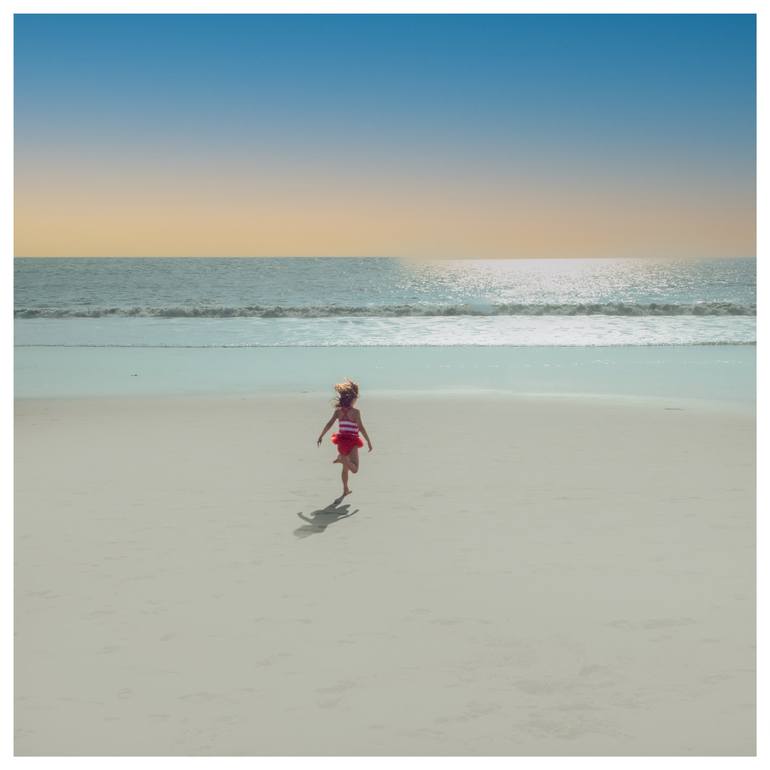 Printed with fine art paper Hanemhule White border included Signed on back Art studio print One day in Santa Monica a little girl was running on the sand