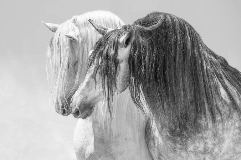 This iconic white horse image is part of award-winning photographer and author Carol J. Walker's "Art of the Andalusians" collection featuring the most beautiful horses in the world, Andalusians, one of the oldest breeds of horses which originated in Spain. Here a gentle but noble white stallion com...