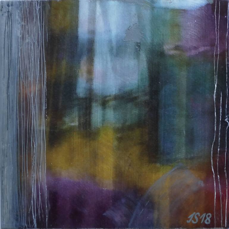 This artwork is one of the first ones of the series 'Details of a construction site at night'. A colorful detail of a construction site in Freiburg at night was chosen by the artist, the photograph transferred on wood. Gray and wax with some lines like curtains on the left and on the right were adde...