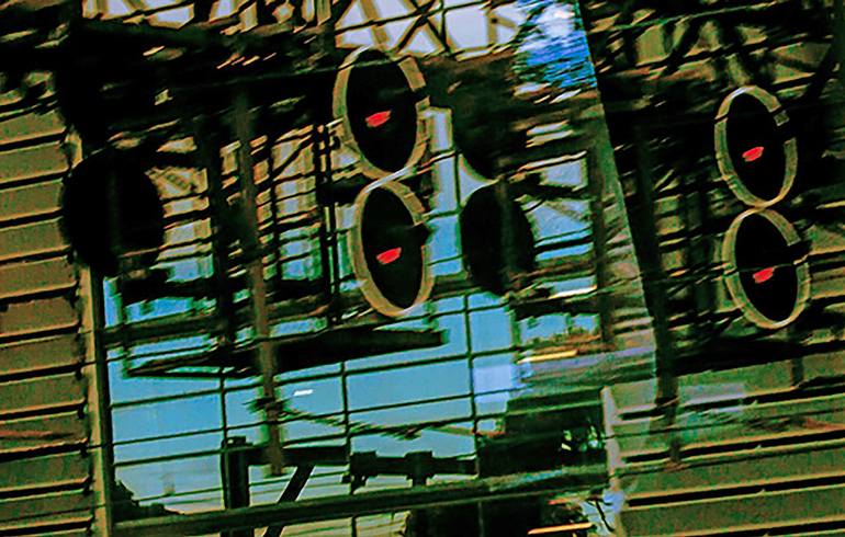 "My city train window presents me with stunning, ephemeral composites of nature, architecture and characteristic urban textures that strike me as abstract industrial art I am compelled to make tangible. The sky's blues, oranges and pinks mesh with overhead power lines and surge into concrete and gl...