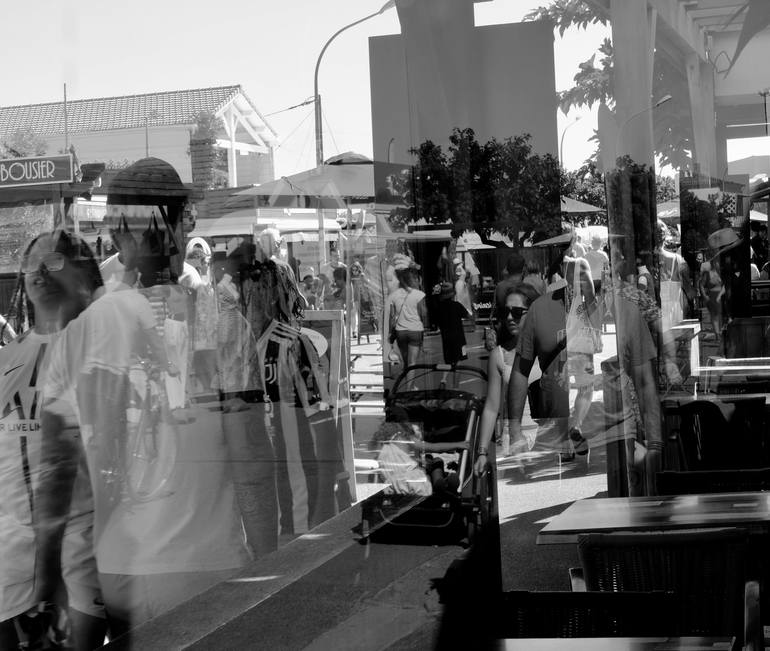 This work is inspired by the complexity and vibrancy of urban life. The reflective glass surfaces of bustling city streets and market scenes are like canvases, layering realities into a collage of movement and stillness. The interplay of people, architecture, and reflections forms an intricate dance...