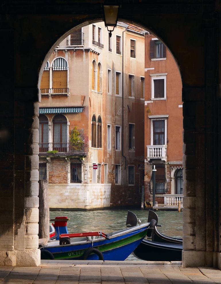 Shot of gondolas through and archway in Venice, Italy. Original prints are limited editions of 10 and will be signed and numbered.