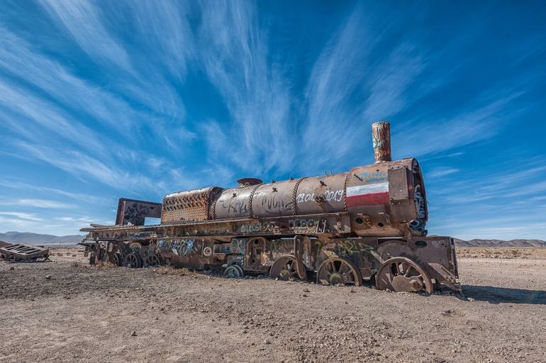 Photo was taken in small town of Uyuni in Bolivia where you can find place called train cemetery, with plenty of old, expired trains and train parts.