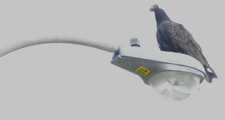 This bird situated itself on a street lamp post with a view of my home destroyed by the flood of Hurricane Harvey.
