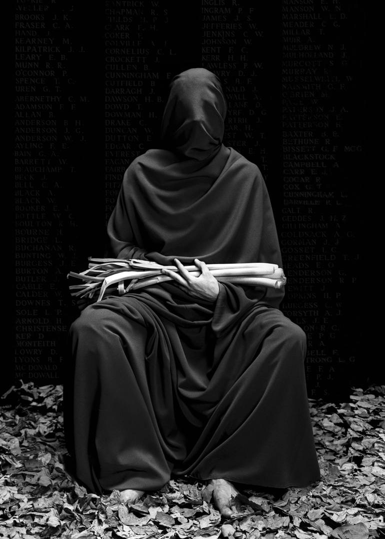 Wars caused death, brutality, hunger, poverty and drama. Yet people still fight. In the background are the names of the Austrian soldiers who died in the Battle of Gallipoli. It was copied from the monumental tomb built in the name of the Battle of Gallipoli. The man sitting in the foreground, cover...