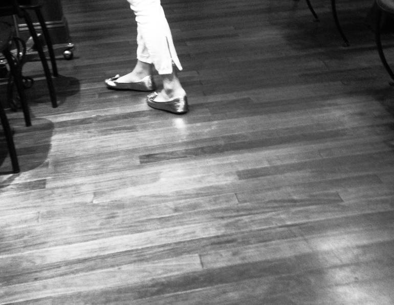 Young lady walking across the floor.