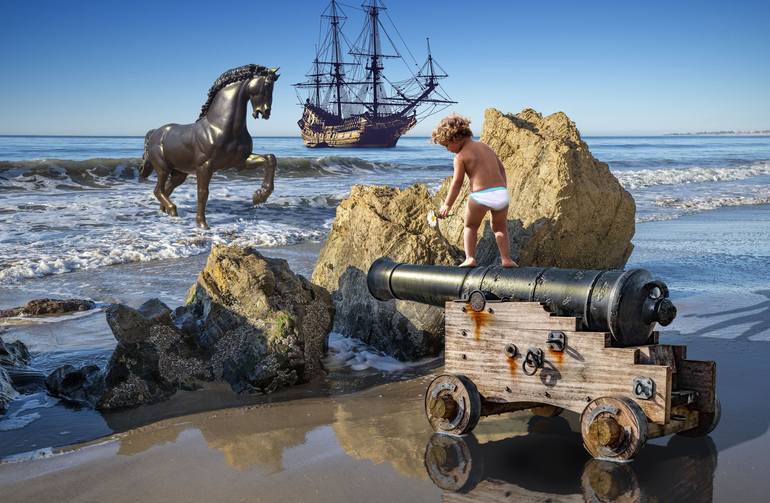 Perry Hambright was drawn to art from an early age, working with oil paints and pastels until he obtained a camera as a teenager. Then he built himself a darkroom where he processed countless rolls of film and printed picture after picture of his native North Carolina. So began an artist’s lifelong passion. His thirst to learn took him to the renown Rochester Institute of Technology, where he studied under Weston Kemp, Tom Muir Wilson, Bea Nettles, and other noted photographic artists, ultimately earning his BFA in fine art photography. As a student, Hambright experimented by combining multiple images for aesthetic purposes and has continued to manipulate photographs as conceptual art to this day. Hambright’s aesthetic is inspired by the surrealism of Magritte, Dali, Escher, Uelsmann, the classic album covers by Hipgnosis, and many others. He has built a large body of contemporary photography featuring marriages between sharp, uncomplicated, pleasingly composed scenes and striking surrealistic additions. The artist’s process goes wherever his subconscious takes him, from the time he photographs something of interest until carefully compositing and manipulating it digitally. Once a particular combination satisfied an inner vision, he continues to refine the amalgamated work until the blend meshes seamlessly to best convey the artist’s intent. For Hambright, the make-or-break test is the impact and feeling the final result communicates when viewed as a quality print. Unlike dreamy fantasy or otherworldly sci-fi looks, Hambright’s style is straightforward and uncomplicated. He calls it “simply surreal.” His conceptual works juxtapose the beauty of nature's bounty with fun or interesting or even bizarre additional imagery he seeks out or comes upon in daily life. His scenic shots, introducing such things as gigantic lifeforms or unusual objects, are meant to delight, surprise, or cause the viewer to think or feel just a bit deeper. His aim is to inspire inquisitive thoughts and spark viewers' imaginations as well as please the eye. Professionally Mr. Hambright has always pursued means to express the imagination, from filmmaking to graphic design to product development, but he continues to produce art photography to nurture a strong creative spirit. Now residing in Santa Barbara, CA, Hambright draws inspiration from this picturesque area, shooting settings he can reimagine by adding conceptual ingredients, as well as stand-alone customary photographs.