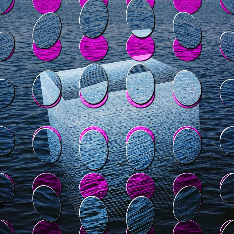 Dots representig different dimensions and time zones in all which the water cube exists. Epson K3 Fine Art premium print on Hahnemühle FineArtPearl (285 g/m²). 2 cm white margin for framing.