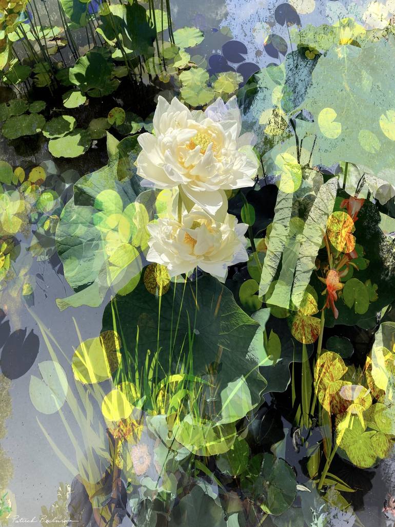 In creating this piece I captured the essence of a serene Lilly pond with symbolic and impressionistic use of color and media. Printed on Hanemuhle fine art Photo Rag 308 gsm. Image size is 30x40 inches, with additional 1 inch border. Paper size is 32 x 42 inches Certificate of authenticity pro...