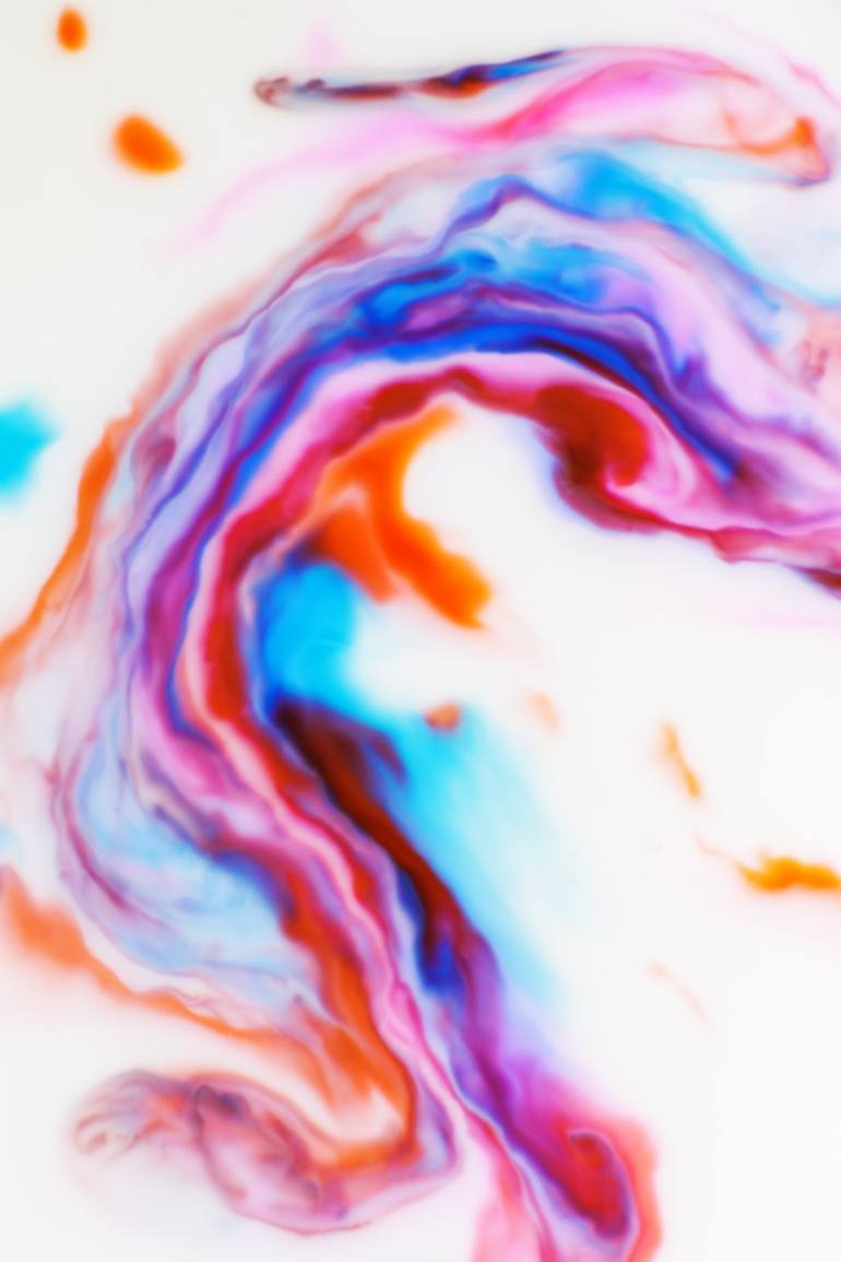 Dynamic macro expressionism. This is a macro photograph of ink in milk. Some kind of picture in motion captured by a camera.
