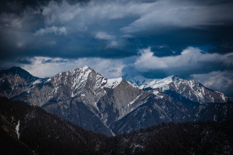 "Whispers of the Caucasus" is a captivating photograph that pays homage to the enchanting beauty and raw power of the Caucasian Mountains. The image, taken at the peak of winter, captures a stunning vista of snow-capped peaks and ethereal clouds dancing around the mountaintops. The photograph showc...