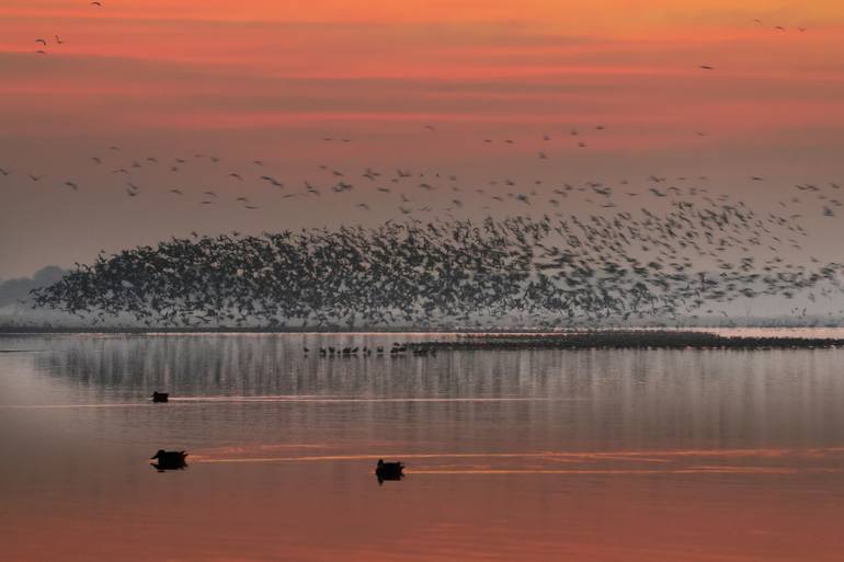 Winter morning murmurations with common cranes in thol bird sanctuary