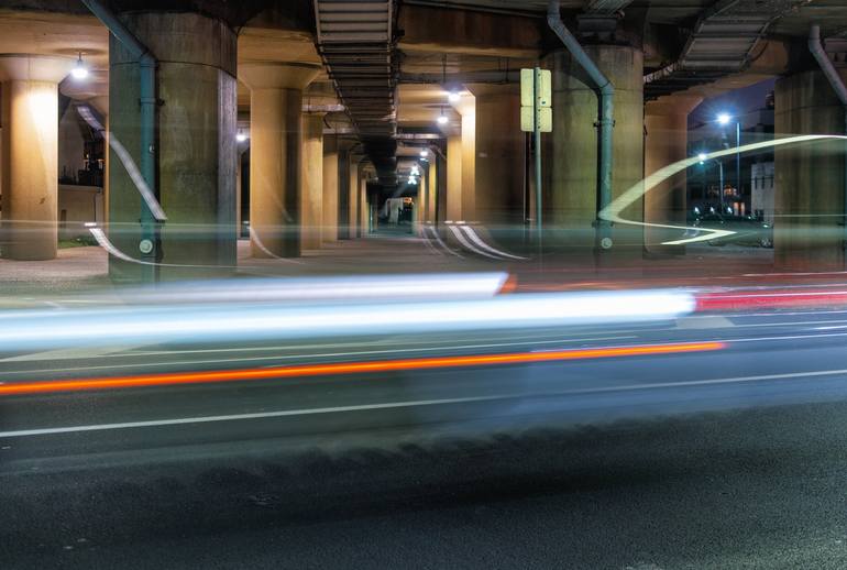 From the series, "Late Shifts," a sequence of shifting evening light and motion. Edition of 6 + 1 A/P and 1 P/P. Printed exclusively for the artist by Brooklyn Editions' Master Printmaker, New York City. Hahnemühle Photo Rag Bright White 310 gsm, with Hahnemühle Certificate of Authenticity. Archiva...