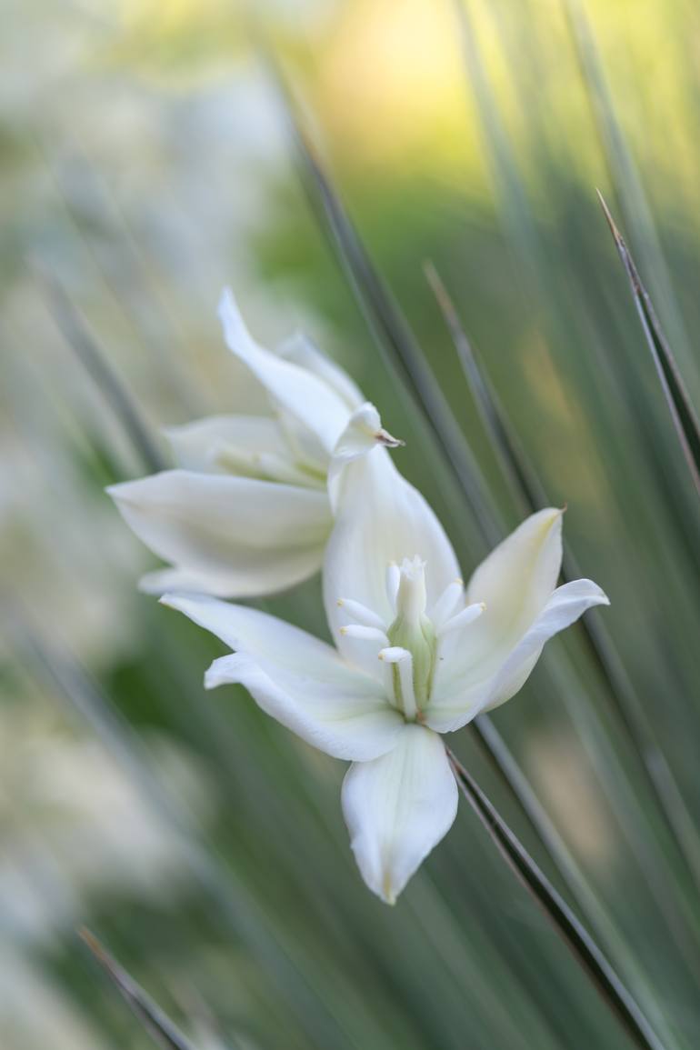 This is a limited edition of signed and numbered 24" x 32" prints. Image area is 17" x 25" New Mexico's state flower, the yucca bloom in late spring. It's a spectacular performance as these normally very dry, often unattractive desert plants suddenly send up their great spears topped with dozens of...
