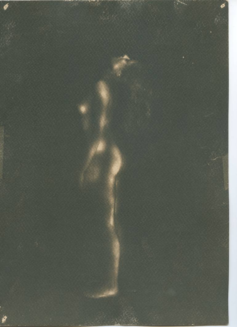 From the serie Nudes in Light painting, hand printed in cyanotype and tea and coffe toned