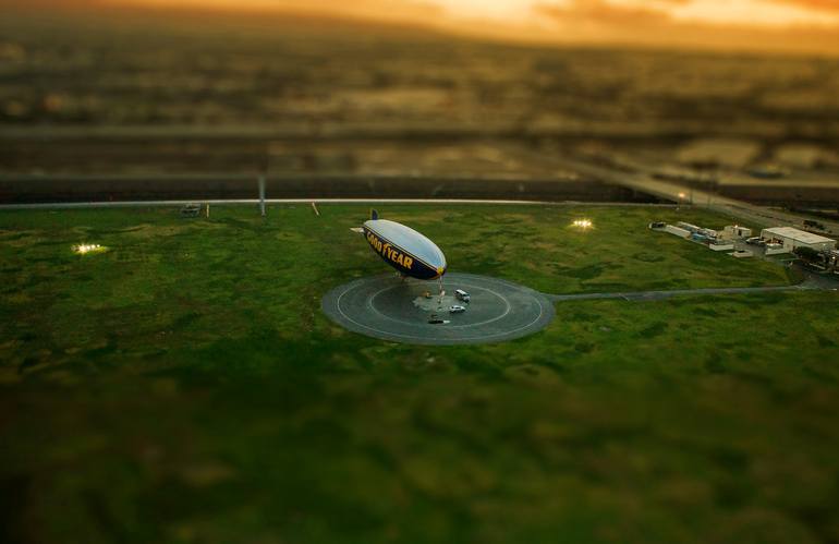 An aerial shot of LA's one of icons, the Goodyear Zeppelin.
