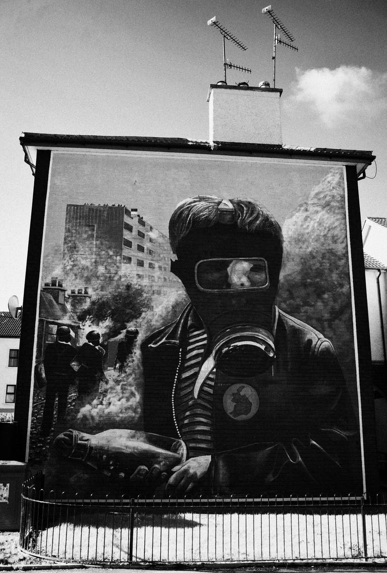 The petrol bomber at the Battle of the Bogside, part of the peoples gallery murals in Rossville Street of the bogside area of Derry Londonderry Northern Ireland