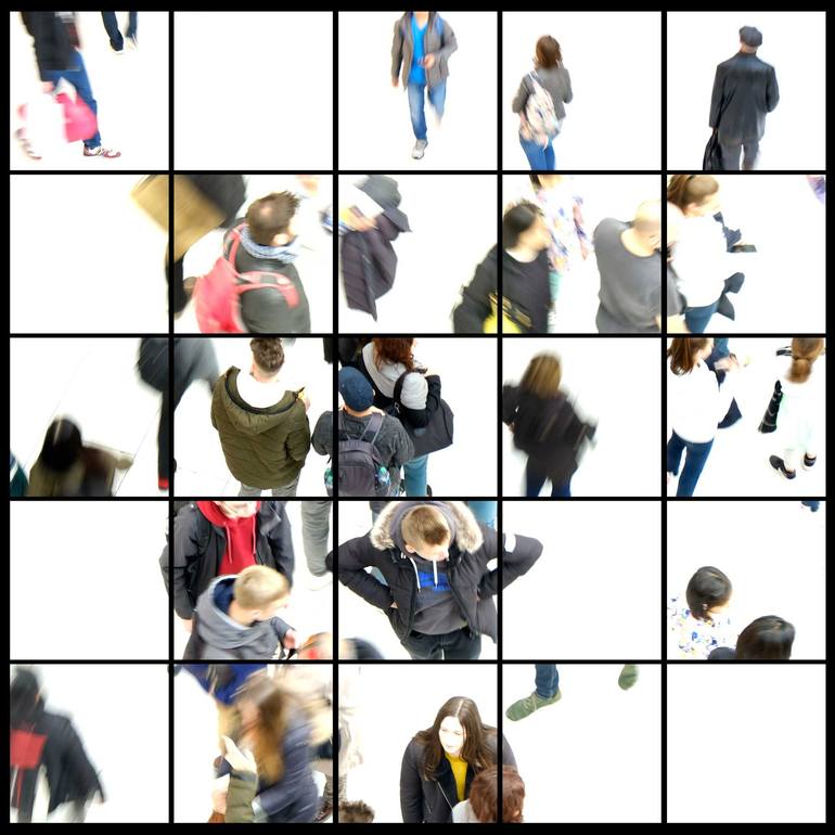 As in a kaleidoscope we observe life flow, unknown people and invisible interactions in an ethereal space. Images like puzzles. Puzzles broken down, made of images taken in the space of a few minutes and reorganized in a representation different from the real one. The observer with his gaze finds de...