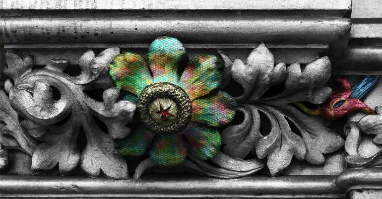 Shot in black and white and painted with colors, a view on some urban details representing some character, animal, flower or another elements digitally transformed to create a new interpretation.