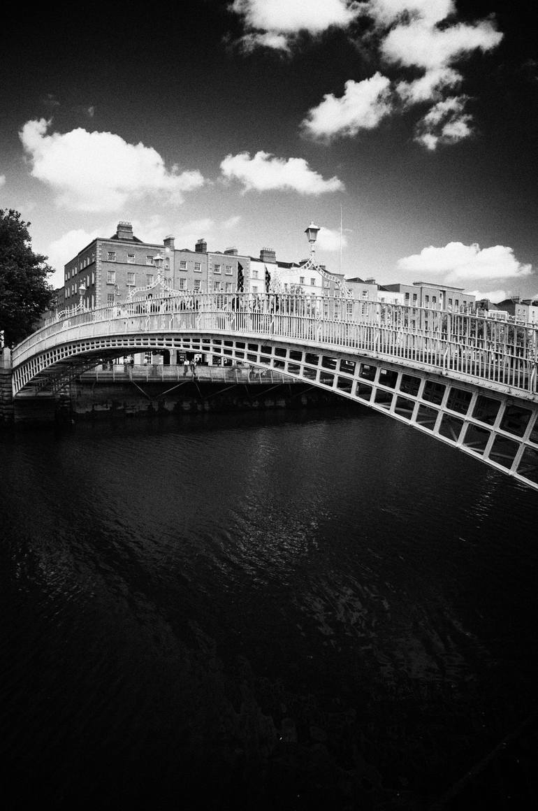 halfpenny hapenny bridge over the river liffey in the centre of dublin city republic of ireland