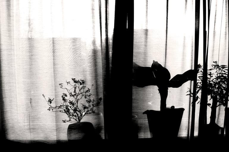 Depicting the plants in the sunlight that is shining through the window and curtains, I see them as subjects of imprisonment. They are growing thanks to the sunlight outside, that only touches them through the glass and therefore never really touches them. This is a thought I associate with some of ...