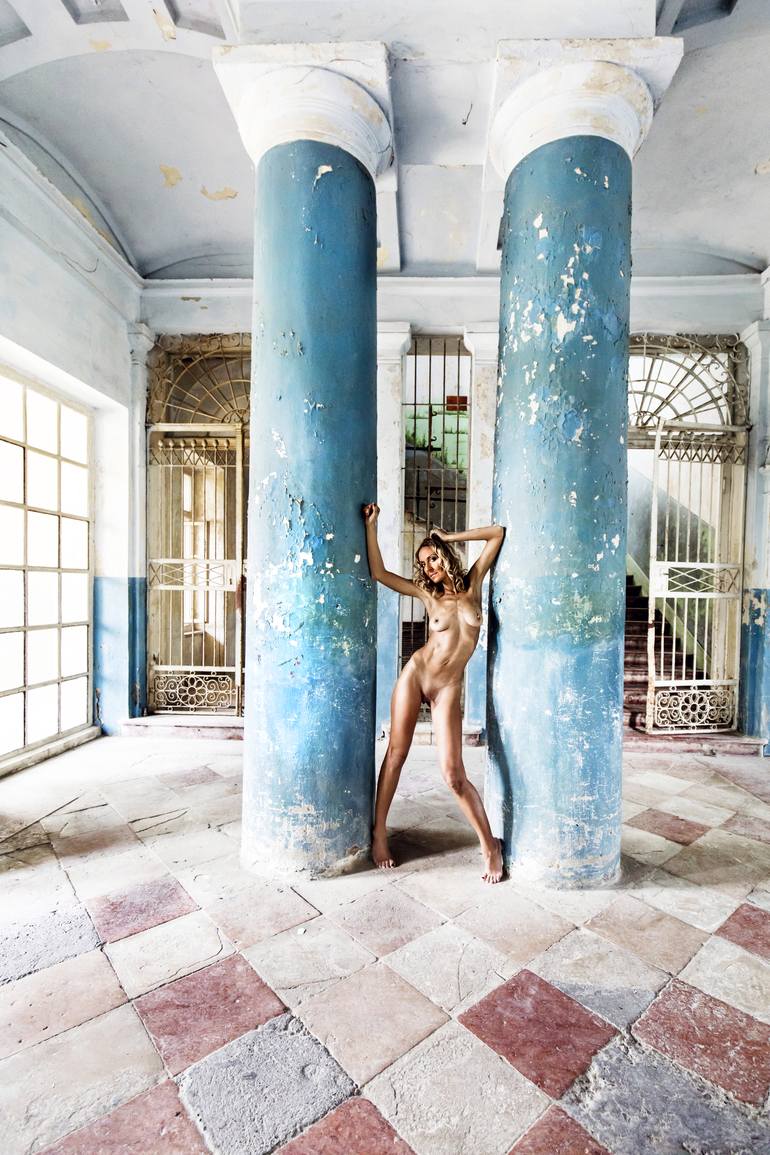 Woman nude in the middle of two blue pillars This artwork is part of collection and exhibition Flesh for fantasy 2018. in Progres gallery in Belgrade. This original artwork comes in limited edition of 10 prints with signed & numbered Certificate of Authenticity with my signature at the back of the p...