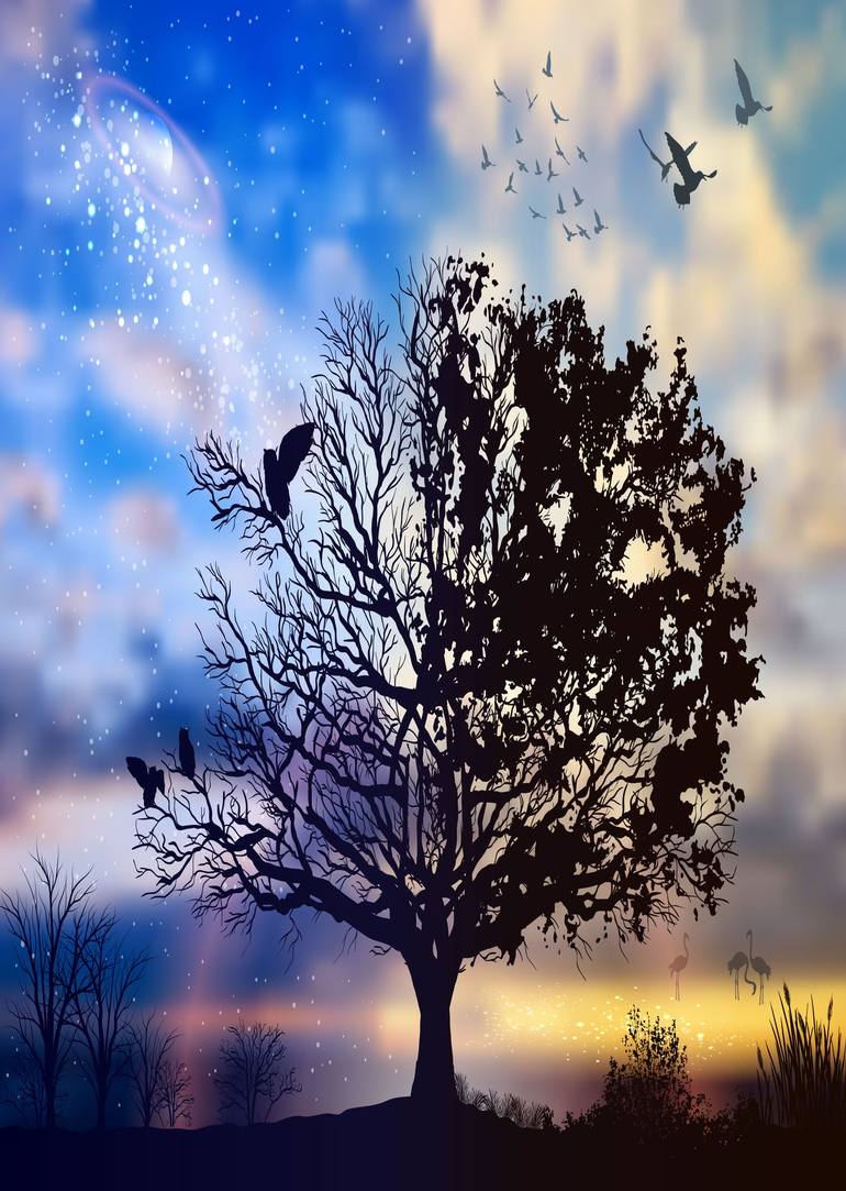 Scene of tree in different seasons Tree: Four Seasons Medium: [Specify medium, e.g., acrylic on canvas, watercolor on paper] Dimensions: [Height x Width] inches/centimeters This artwork is a visual exploration of the cyclical nature of life as embodied by a tree. Its form, a central pillar, stand...