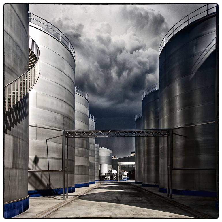 the architecture that goes with the factories is an element of the landscape that always attracted me. Working with digital editing software, I opted for a change in colors to give the image a personal drama.
