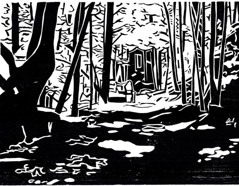 "A Walk in the Woods" is a hand printed woodcut print. Image size is approximately 7" x 9" and depicts a scene along one of the hiking trails in Western Pennsylvania's Cook Forest. Black ink on white mulberry paper. Signed in pencil and numbered as an open edition. Purchaser will receive the lowest ...