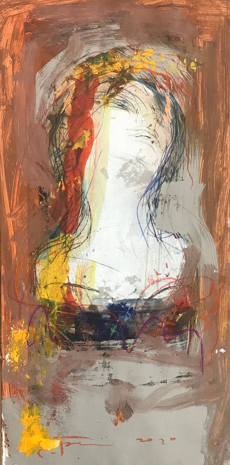 The artwork on the paper "A girl from Warsaw" and it has done in a gestural style. Etching, mixed media, authors technic. The size is 90x45 cm. 2020. If you have any questions, feel free to ask them, I will gladly answer.