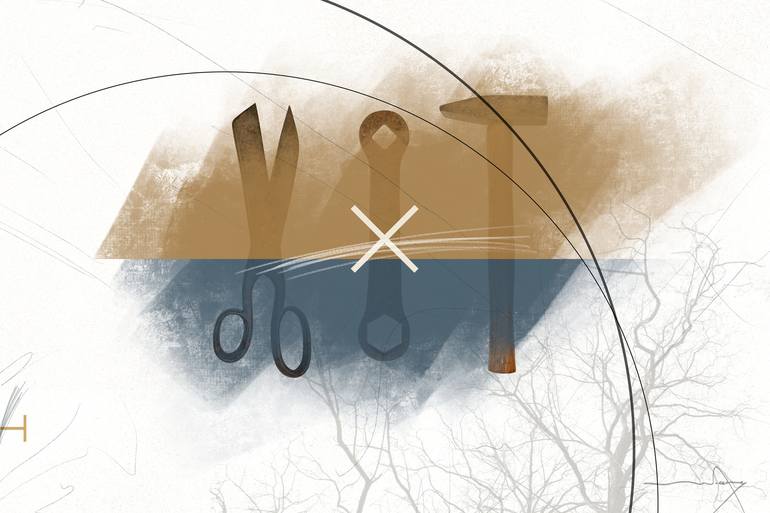 Vicenç started painting oil on canvas in 1971, when he was only fourteen years old. As Vincent Van Gogh, Vicenç Marco also signs his artworks with the name, Vicenç. Although Antoni Tàpies has been the painter who has influenced his paintings the most, Vicenç has always felt very influenced by impressionist painters, specially for Paul Cezanne. He discovered photography shortly after painting. He started taking only in black and white photos. The black and white negatives and prints were developed by himself. This allowed him to engage in the development process and achieve the desired results. While he studied fine arts at the Escola Massana in Barcelona, he discovered the world of graphic design. He was fascinated by the idea of making graphic compositions with fonts, illustrations and photographs. In 1988 he acquired his first Mac computer, which allowed him to gather fonts, illustrations and photographs in a single support to create any kind of graphic project. Although he has never abandoned the traditional techniques of drawing and painting, nowadays all his works are done digitally. Drawings, typography and photographys continue being the sources in which he bases his artworks. The final artwork is not a closed piece but an inspiration point for the viewer, says Vicenç. He think that each of his artworks are the beginning of a story, a path, a journey that we could do.