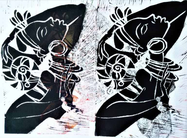 Abstract black deep African American female portrait linocut ❤︎ Save it by favoriting it! One of a kind artwork Size: 40x50 This artwork is unframed The picture is titled and signed on the back and also comes with a certificate of authenticity. The work will be shipped by DHL from Norway it s...