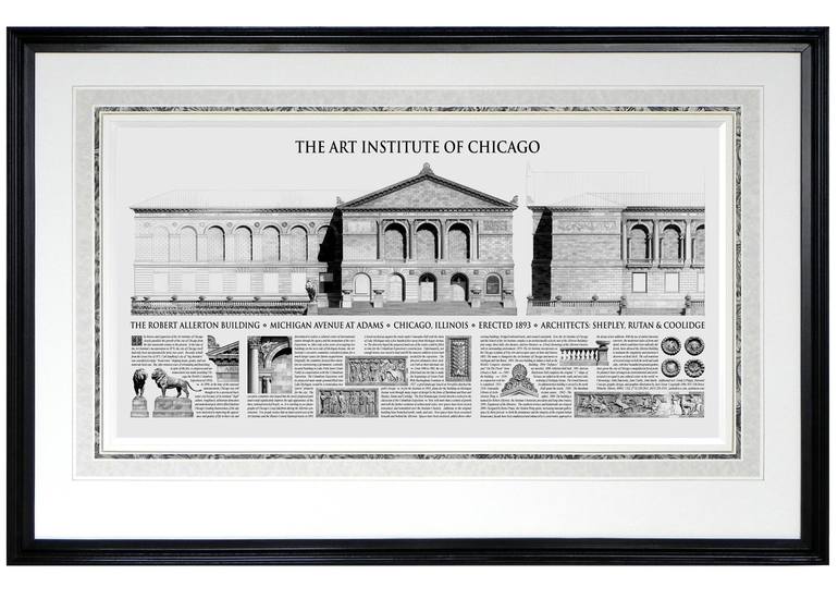 Christened the Robert Allerton Building in 1968, the original Neoclassic, Renaissance Revival styled building of the Art Institute of Chicago was constructed on Michigan Avenue at Adams Street in 1893. The print is a composite of two large pencil drawings of the Institute’s original 1893 structure, ...