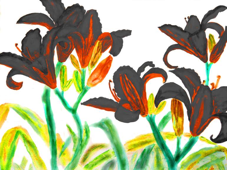 Painting: Black lilies on white background. This painting is for sale only as prints and digital licenses because it is digital variant of original painting with colours changed in photoshop. Original painting for sale is here: This is Artistic produced limited edition prints of 26. Original paint...