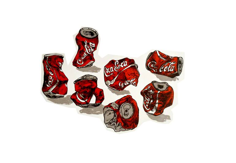 Empty Coca Cola cans stand as a tool of consumerism and mass production in the popular culture