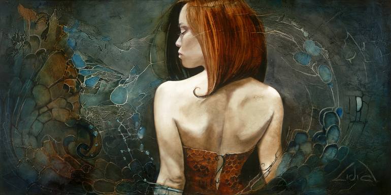 BIO Lidia Wylangowska, a native of Poland, lives and works in U.S., Illinois with her husband, Christopher since 1993. She works mainly in portraiture and figurative oil painting. While her artistically expressed stories revolve around personal exploration of her internal and external worlds and their wonders, imagination and meanings, her pieces allow viewers to interpret for themselves. Her distinctive, dynamic artworks display a wide variety of themes and moods; executed in muted, neutral colors, dramatic contrasts are created with vibrant hues or tones that are layered over lacy, vegetal, and textural relief patterns. This combination of realism and abstraction that plays across the surface of her pieces, imbues them with a sense of the merging of internal and external possibilities. Lidia has developed her own visual vocabulary and inimitable style as an autodidact. Her distinctive personal style emanates a spectrum of human nature. Her artwork is included in numerous private art collections throughout the U.S. and internationally. She has also created many commissioned works of art. STATEMENT My art tells my story. It's a story of my world, of my thoughts and emotions entwined in an internal dialogue. And some of it can be expressed only through painting. It is incredible, how fairy-tales I heard once-upon-a-time, in my childhood actually influenced my life and defined who I am. As an adult, I still believe in happy endings and that good will prevail. The Enchanted Pencil is one of the stories I remember very clearly. This special pencil could materialize anything drawn, such as doors that lead to any place imaginable. I realized this story has become hardwired in me. And now my paintings are those doors. Doors that lead me to my own world of peace and harmony. A world where dragons, wyverns, basilisks and dwarfs roam free. Where life has a deeper meaning which I do not yet comprehend but searching for this meaning is a fascinating process. ..... PROCESS OF WORK The painting process will likely begin before you realize you want to do it. However, taking it purely technically ... Here is plywood. A few layers of primer. I start with a sketch and then work with oil paints starting with the subtle valors. Light is probably the most important element of my research. However, it is also true that the deeper the shadow, the brighter the light is. Possibly it is about looking for a balance.