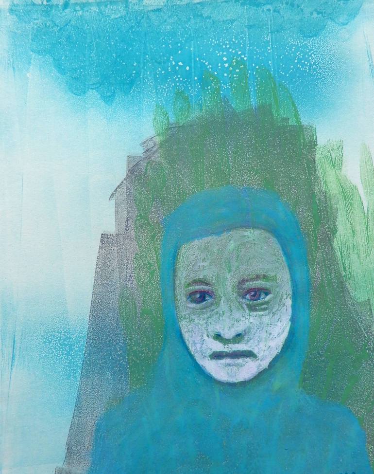 A walk brings new thoughts or makes them all disappear. The stroll is a monoprint. A monoprint is a one-off handmade print, as unique as a painting. I used rollers and brushes to spread ink on a smooth plastic plate, then made marks with a cloth and other tools. Each color a new layer of ink. Thi...