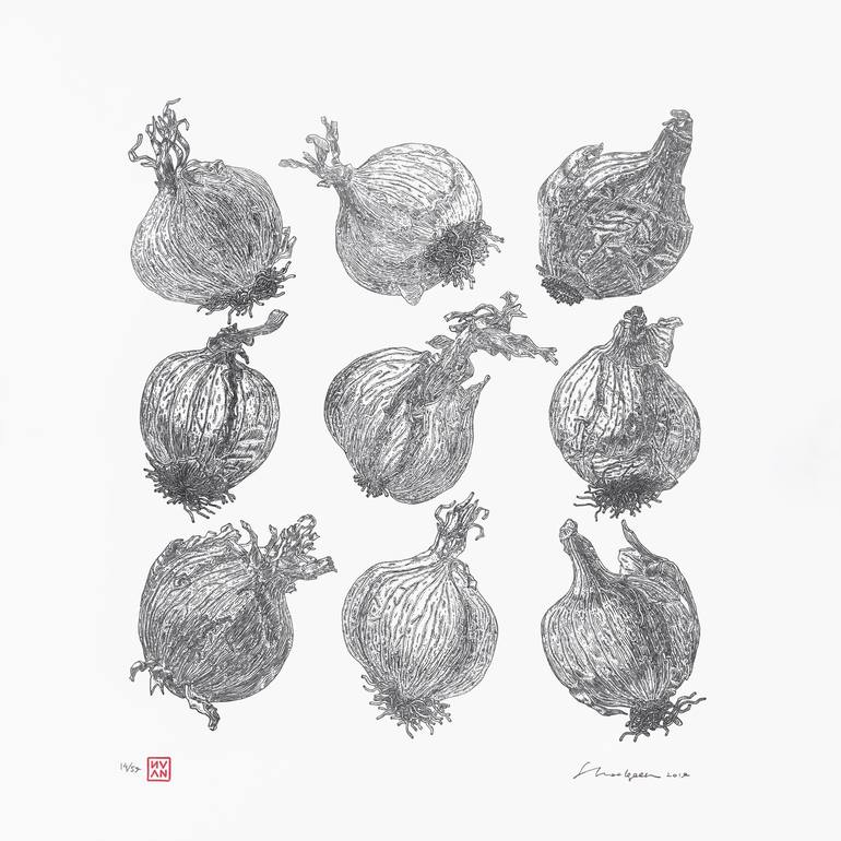 "Don't forget your roots. Onion" Limited serigraph on 100% cotton paper 200 gsm with hand-deckled edges. 21,6х21,6 inches (55x55 centimeters) Edition of 59, signed and numbered by the artist. This print does not come in a frame and is shipped rolled up in a hard cardboard tube. Nature and natur...