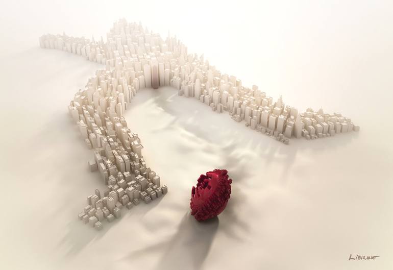 research with the new media has led me quietly to this universe, a big city, red folded in on itself, whose infrastructure emerges towards nothingness. in the distance a woman emerges, this woman city Please contact curator@saatchiart.com for more details."