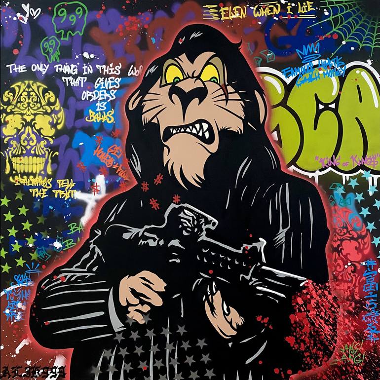 ✠ HYPE SCAR | THE LION KING ✠ 🖼️ | Style: Street art / Pop Art 📏 | Size: 100x100 cm 🎨 | Premium print on canvas 💎 | Limited series of 10 pieces 📝 | Certification signed by artist Alik Bilialov (ALIK999) 🌎 | Worldwide Secure and Fast Shipping 🛋️ | Art piece ready to hang 📸 | Instagram: Al...