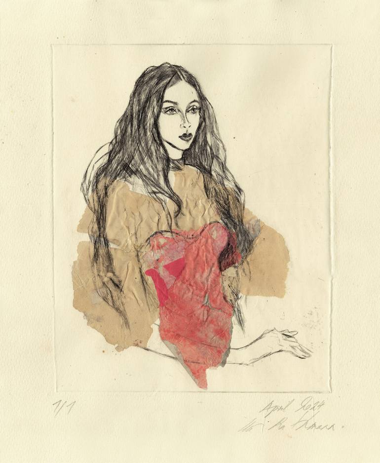 Chine collé with drypoint etching Plate size: 11,7" x 9" (29,6 x 23 cm) Paper size: 15,6" x 13 (39,6 x 32,5 cm) April 2024 Signed, numbered (1/1) and dated on the front Original hand pulled etching This piece is unique and unrepeatable. All materials meet archival standards for printmaking. I o...
