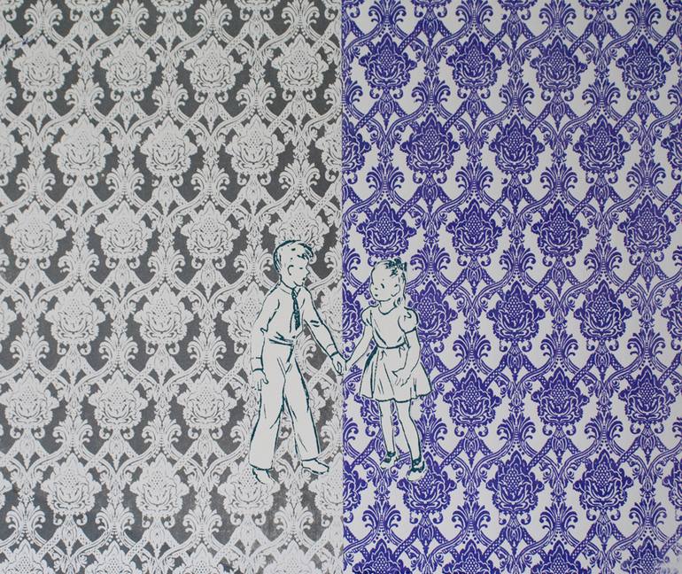 I Wanna Hold Your Hand (Charcoal/Purple), Screenprint Collage, 19"x24", 2013