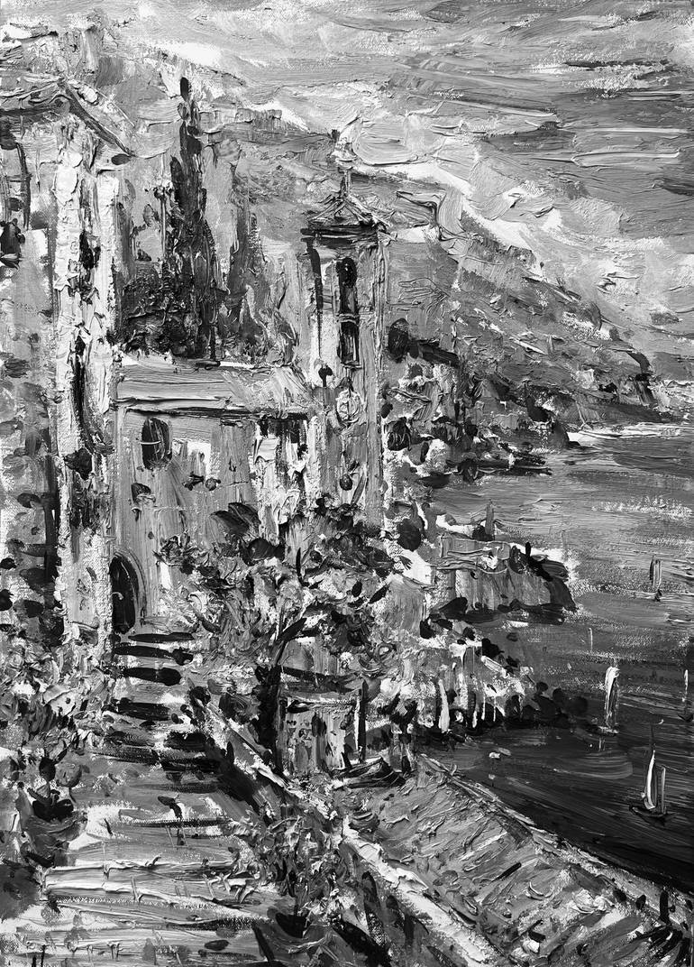 Abstract Landscape serigraph printing graphic arts. This Graphic Printing came out from my old composition of an Italian coastline Oil painting. Adapted to the new medium of printing in Black and White on HahneMuhle FineArt Paper.