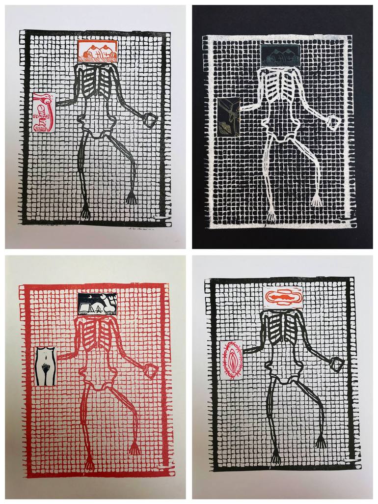 Series of 34 Linocuts on Paper with Added Engraved Elements – Inspired by a Roman Mosaic Limited edition of 34 hand-printed linocuts on paper (black, white, natural), featuring unique additions of elements engraved on erasers. Each work is directly inspired by Roman mosaics from Antiquity, where the...